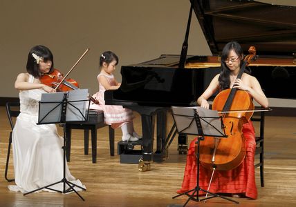 はじめての『発表会』が、2012年4月1日(日)に「すくらむ21ホール」にて開催されました。850人収容可能なホールで生徒さんのソロ演奏や連弾、また希望者によるピアノ、バイオリン、チェロのアンサンブル演奏が披露され、楽しい一日となりました。