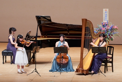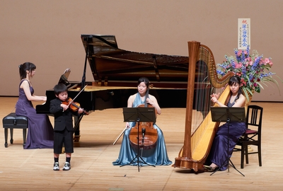 2013年3月20日(水、祝日)、第2回発表会が「多摩市民館 大ホール」にて開催されました。ピアノやバイオリンのソロ演奏に加えて、ご希望される生徒さんには、ピアノ、バイオリン、チェロ、ハープによるアンサンブル演奏(四重奏)にもご参加いただきました。
